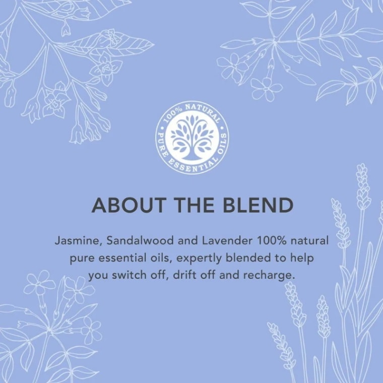 このドリーミーブレンドは、穏やかにするラベンダー、温かみのあるサンダルウッド、心を落ち着かせるジャスミンの100%ピュアナチュラルエッセンシャルオイルの組み合わせから創られています。